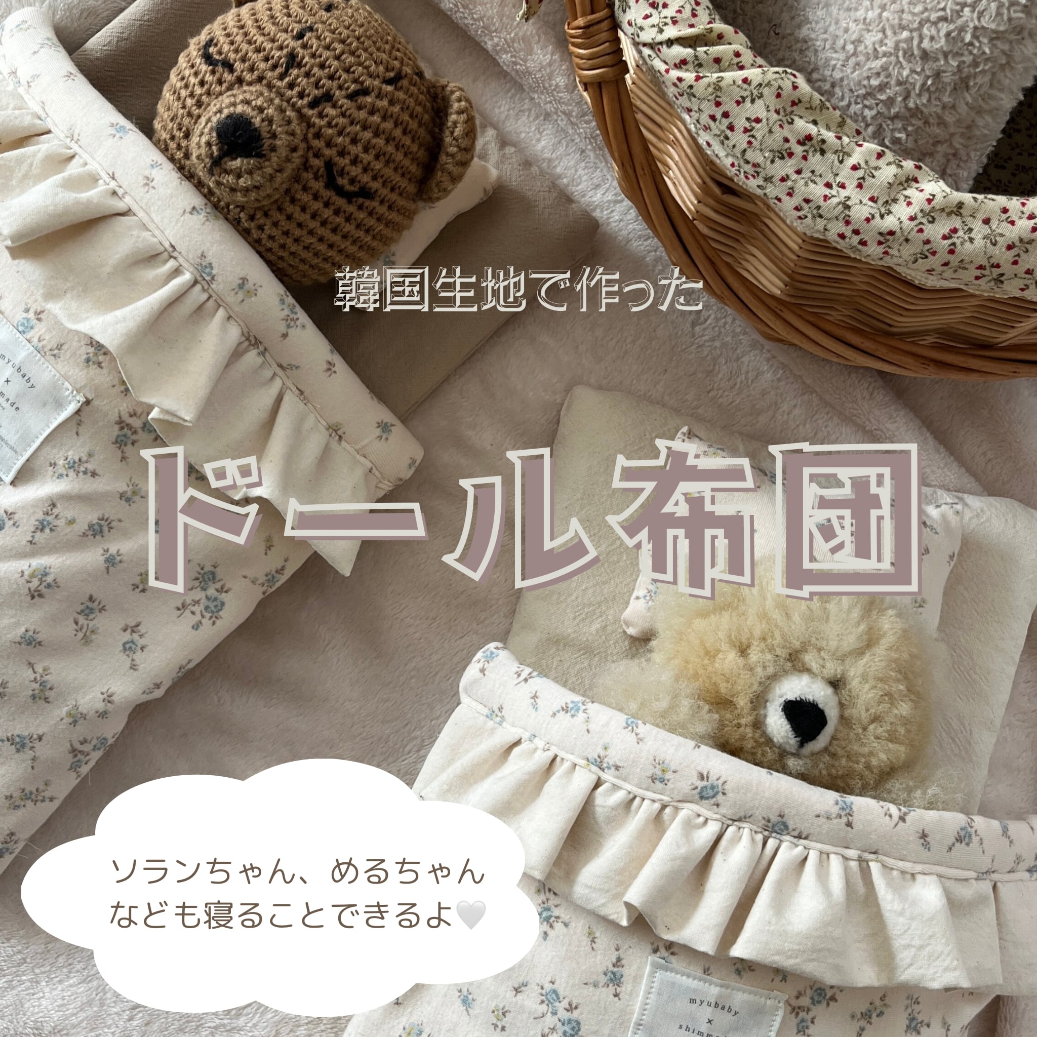 韓国生地で作られたドール布団です